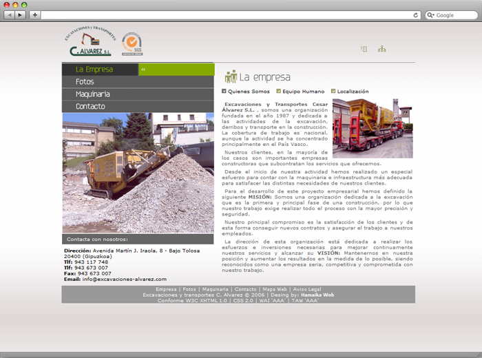 Excavaciones Alvarez web orrian honi buruzko informazioa aurki dezakegu, helbideak, argazkiak, makinak e.a.